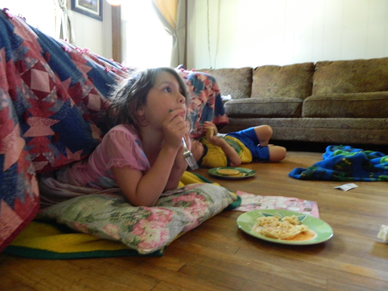 We ate waffles in our fort…