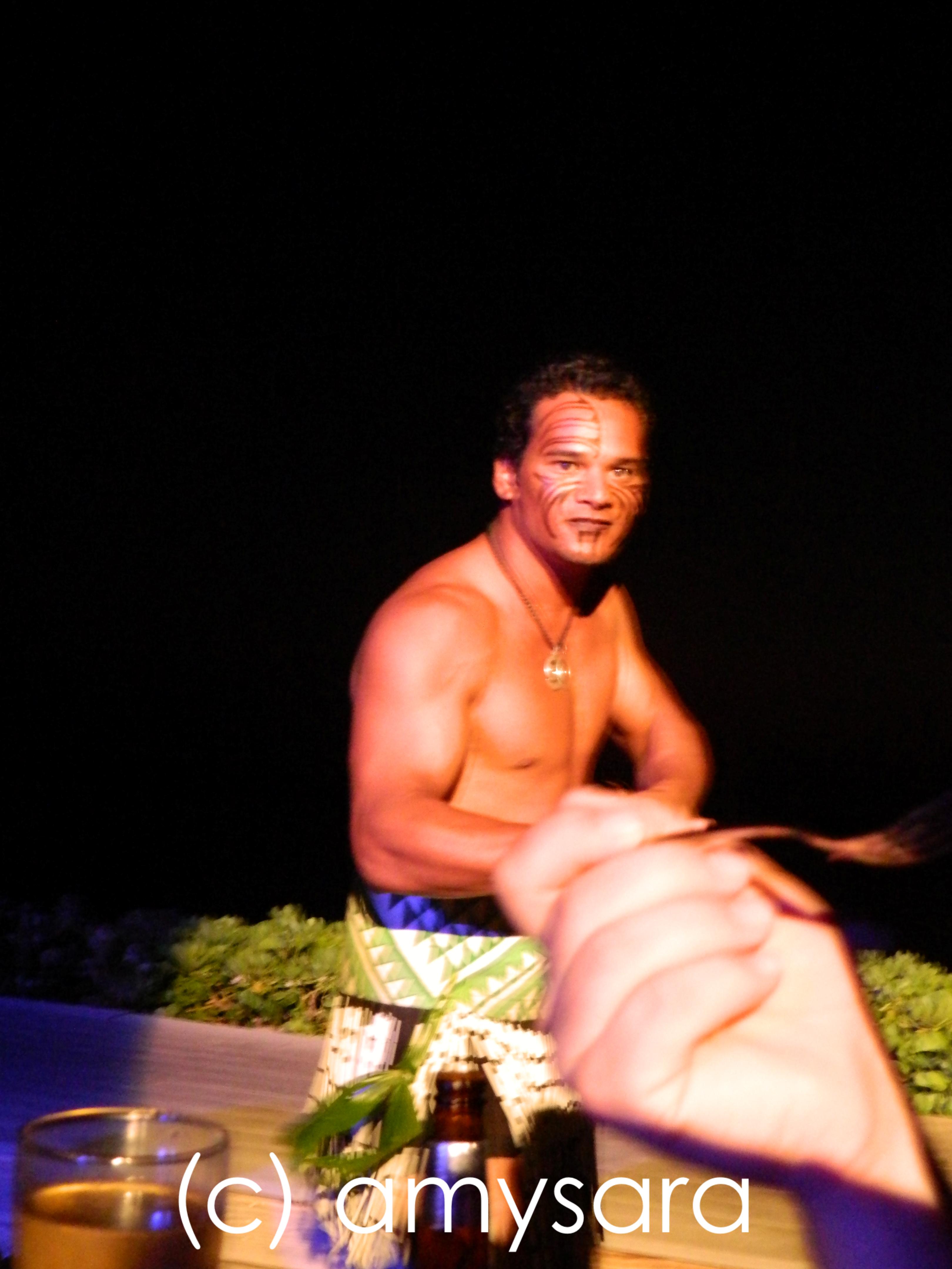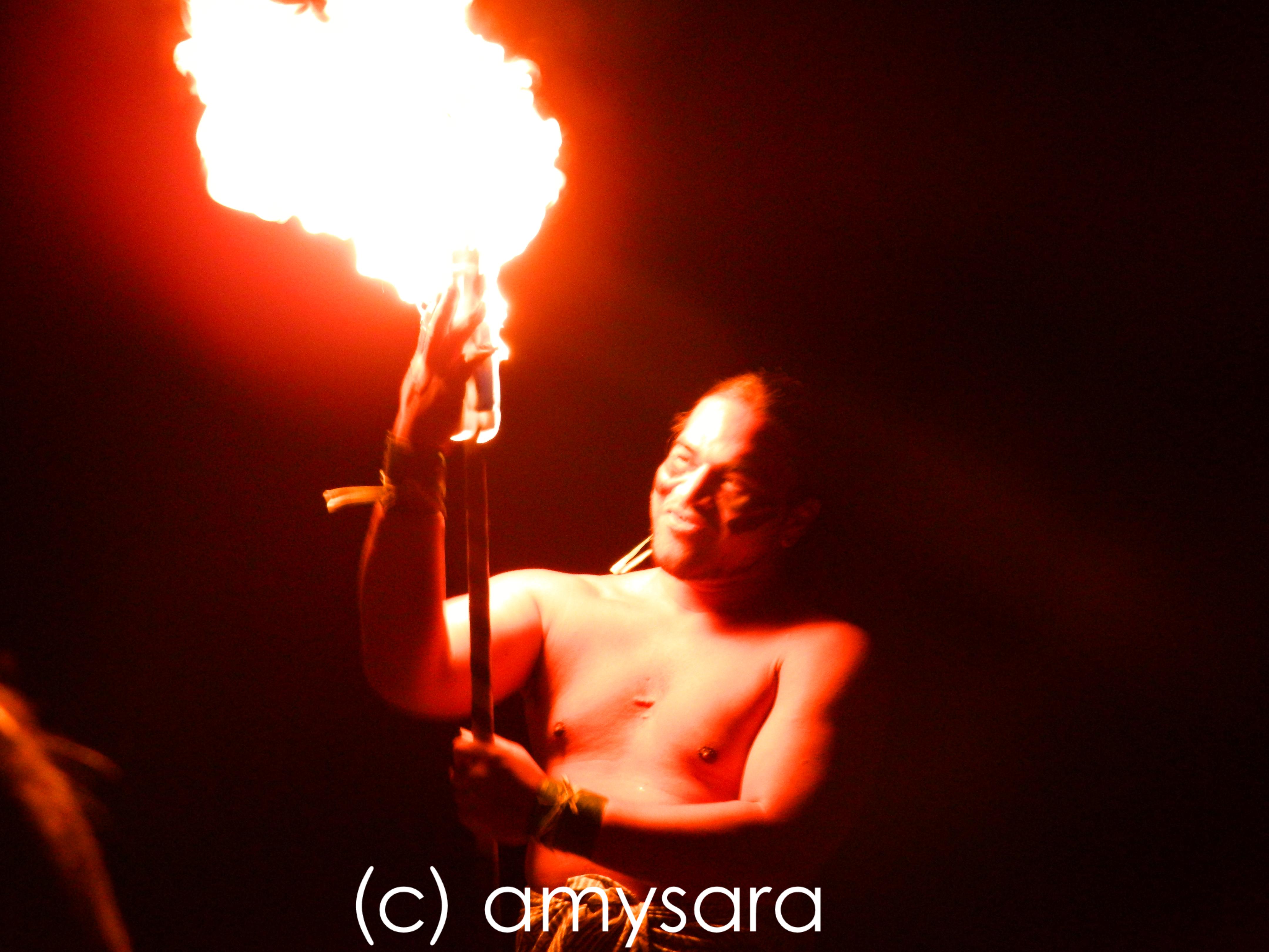 Samoa – This is the Fire Knife dance, and it was performed by the Chief of the tribe. Here, he is using his hand to grab the fire, and he will touch it to the other end, and light both ends of the knife.