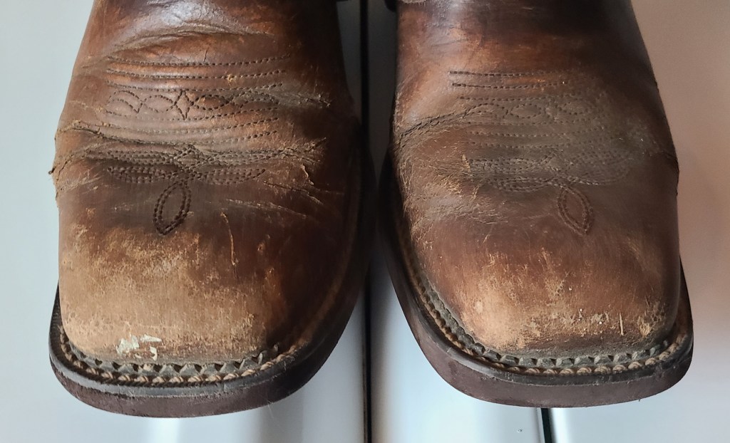 Back when I went to the Movement Disorder Specialist, one of the things she asked to see was my boots. I thought this was odd since I never had a complaint about my feet; but I am compliant with physicians, so I showed her my boots. Even at that appointment, I did not understand or recognize what she saw. It wasn’t until weeks later at an unrelated physical therapy appointment that the Physical Therapist said, “Oh yes I can see!” that I realized the answer was on my boots the entire time!